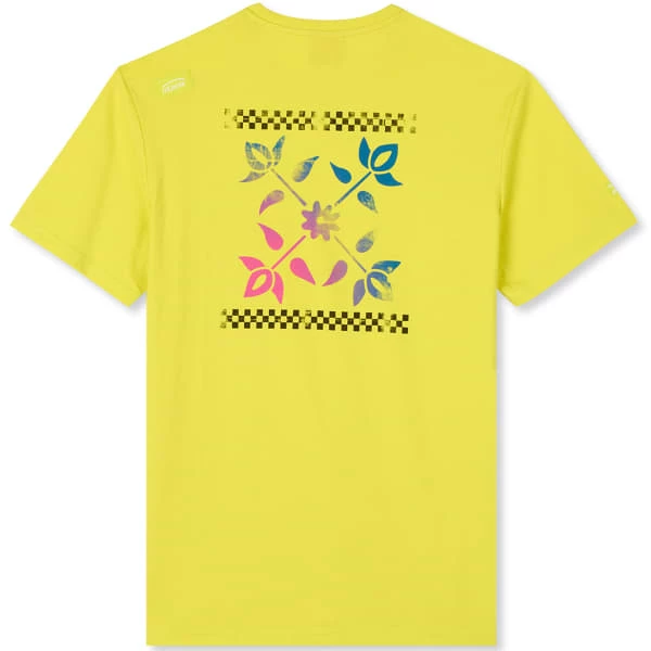 En plus de son grand motif multicolore placé dans le dos, ce modèle ajoute un petit picto de rappel sur la poitrine gauche.